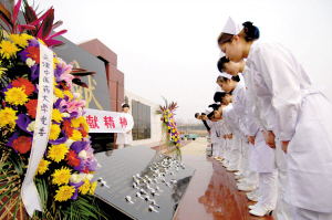 清明节前夕,天津中医药大学的50多名师生来到天津元宝山遗体捐献者纪念园,在“奉献碑”前深深鞠躬,驻足默哀。学生们在墓碑前宣誓,表达志愿为医学事业奉献青春的决心。“在‘奉献碑’上镌刻着一个伟大的名字——第37届南丁格尔奖章获得者王桂英老人,她把自己的全部奉献给了护理事业,遗体捐献给天津中医药大学。我们接受的不仅是王桂英老人的遗体,更接受了她的伟大精神。这种精神将永远激励着我不断进取,将来回报国家和社会。”学生高佳说。据了解,类似的祭奠遗体捐献者活动每年都会举行。