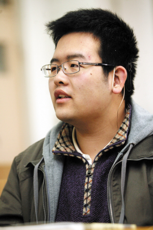 走进河北工业大学南院,总会看到这对母子。在校园内,娘俩时不时地牵着手散散步。在教室里,他们又总会肩并肩坐在第一排,儿子费力地听着什么,并将板书记下,和他不同,妈妈则一字一句记录着老师所讲的内容。要不是腰间挂着一个接收器,丝毫看不出眼前这个大男孩与普通小伙子有什么区别。这个接收器,是他听到外界声音的唯一来源。