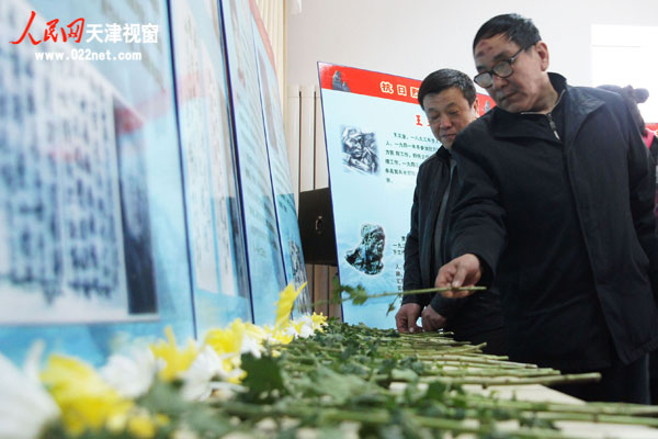 人民网·天津视窗3月31日电:3月30日,天津市和平区劝业场街在福明社区居委会开展“缅怀革命先烈弘扬革命精神”祭英灵传统教育活动。天津市民政局优抚处副处长徐飞,和平区民政局局长郑育民参加了活动,此外驻区部队、驻街单位、学校、烈士遗属、老战士、群众等代表共65人参加了祭奠活动。活动当天,劝业场街各界代表来到福明社区居委会,会场庄严肃穆,哀乐低回。人们怀着崇敬的心情向革命先烈默哀、鞠躬、献花。活动中还进行了网上祭英灵和文明祭扫宣传签名。