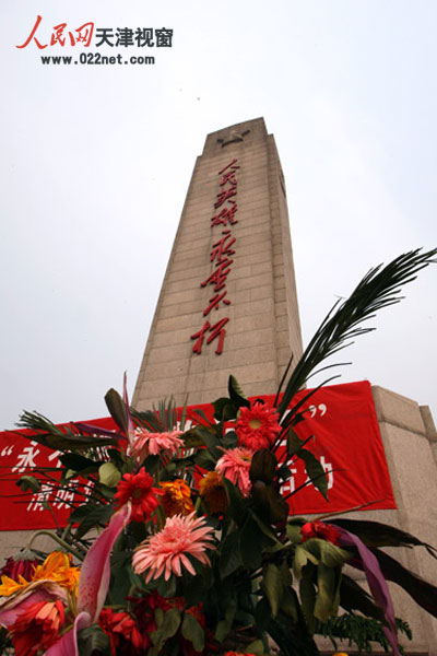 “褒扬先烈,教育后人”是西青烈士陵园的建园宗旨,每当清明来临,学生们、武警官兵们、党员干部们纷纷来到陵园内,在纪念碑下缅怀故人,为烈士们敬献花圈。(摄影:聂爽)