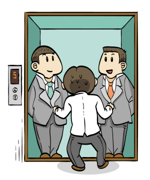 听着新上司的夸奖,老上司眯着眼笑着看小林;小林面容尴尬地冲老上司笑了笑,然后一直低着头,就连电梯停了也没察觉到。