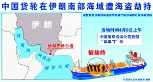 中国南京远洋公司“祥华门”号巴拿马籍货轮当地时间6日9时30分左右在伊朗南部海域遭海盗劫持。据新华社报道,中国驻伊朗大使郁红阳表示,“祥华门”号货轮从上海港出发,经新加坡港卸下部分货物后,前往伊朗南部波斯湾沿岸的霍梅尼港。在行驶到伊朗南部阿曼湾恰赫巴哈尔港附近海域时,货轮被一伙身份不明的海盗劫持。