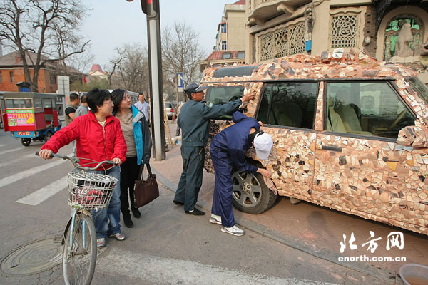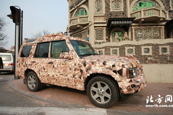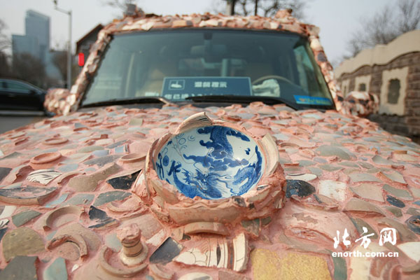 天津北方网讯:日前,记者在位于五大道的中国瓷房子博物馆门口看到,一辆满车镶嵌名贵古瓷的路虎汽车,引来不少游客的好奇目光。价值过百万的“瓷路虎”成为天津“瓷房子”之后又一吸引游客的艺术品。