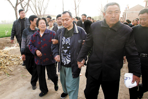 大家簇拥着一家人回到了家里,三间简单的平房,被亲戚和村民挤得满满的。老母亲坐在床上抱着儿子不松手,一边哭,一边说:“你在外边受了多少罪啊。爹妈想你都想疯了。”老母亲忙着告诉女儿、儿媳:“快做饭啊,你哥这么多年肯定没吃过一顿安生饭。他爱吃肉,多做。杀鸡,那儿还有刚摘的菜。”老父亲在一边劝着:“怕他不消化,做点软和的。”家里人忙着,老两口就对着儿子哭一阵说一阵。张春海的二弟在一边劝着老人:“快别哭了,终于一家团圆了。你看,我哥这一回来,就当爷爷了。”说着,就抱过了自己的小孙子,对张春海说:“哥,你走那年,我不是刚有了儿子吗?今年他都26岁了,他都有儿子了。”看到小孩子,张春海也开心了,思维好像也清楚了一些,也认出了爸妈、妹妹,还能认出村里一些年长的邻居,大家这下可高兴了。
