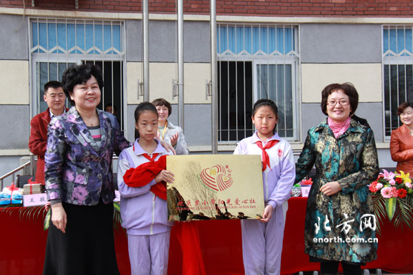 天津北方网讯:为了弘扬中华民族扶贫济困的优良传统,发扬“一人有难,八方支援”的民族精神,4月12日,结合学校的实际情况,欢庆里小学的“爱心阳光社”正式成立。成立仪式上,社会各界为学生捐赠了书包、书本等文具及日常用品。