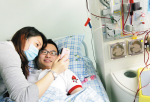 天津北方网讯:17日上午8时许,经过5天注射动员剂,我国首位造血干细胞外籍捐献者——35岁的马来西亚籍华裔杨永康先生在天津第一中心医院的造血干细胞采集室内开始采集造血干细胞。整个采集过程十分顺利,中午时分,从上海赶来的安徽籍白血病男孩的主治医生接过新鲜的“造血干细胞悬液”,并搭乘当天的航班赶回上海,拯救男孩的生命。记者从竹侯砚摄影记者王倩
