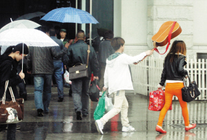 前天津城天气闷热,似乎为昨天的降雨提供了充分的准备。很多市民以为昨天清晨出门,会看见湿漉漉的地面,但是昨天凌晨津城仍旧阴沉无雨,不过外出感觉凉风阵阵扑面。接近午间时分,天空忽然阴云笼罩,风力加大,偶尔还能听到雷声。不多时,雨点哗哗地落了下来,街上行人纷纷躲避。
