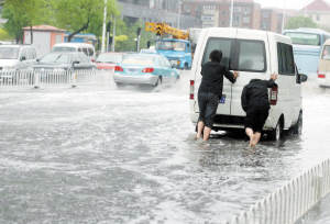 大雨导致多路段积水行人车辆“伤不起”
