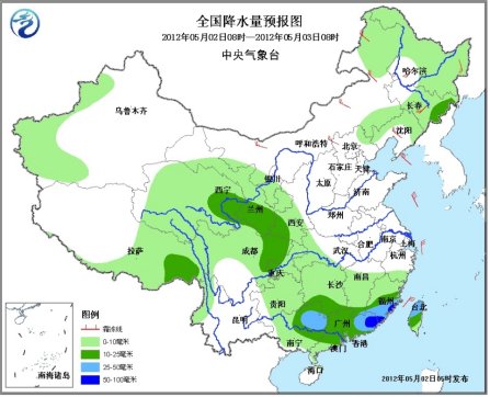 据中央气象台预报,2日,福建南部、广东东部、广西东北部、台湾北部有大雨,广东东部、福建南部局部有暴雨(50~70毫米)。3~5日,江南、华南依然持续有降水天气,主要为小到中雨,局地大雨,部分地区伴有短时强降雨、雷雨大风或冰雹等强对流天气。另外,2~4日,西北地区中东部有小到中雨。