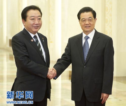 | 5月14日,中国国家主席胡锦涛在北京人民大会堂会见出席第五次中日韩领导人会议的日本首相野田佳彦。新华社记者黄敬文摄 |