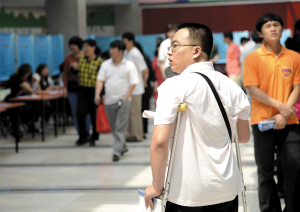 天津北方网讯:在全国助残日到来前夕,市残联联合相关部门举办的大型残疾人专场招聘会昨日在市青少年儿童活动中心举行。招聘会现场,199个招聘单位为600多名到场求职的残疾人提供了50余个工种的1052个就业岗位,最终有387名残疾人达成了初步就业意向。本报记者韩雯张磊摄影报道