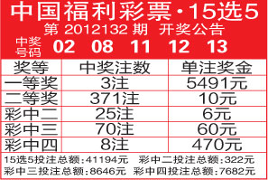 中国福利彩票·15选5第2012132期开奖公告 ...