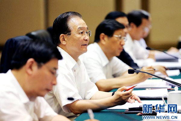 19日下午,温家宝在武汉主持召开座谈会,与河北、辽宁、江苏、湖北、广东、陕西六省负责人一起分析研究当前形势。各省反映,目前经济运行总体平稳,结构调整取得新进展,民生持续改善,但需求不足、部分行业和企业效益下降等矛盾比较突出,经济下行压力加大。温家宝说,做好当前的经济工作,必须准确分析和判断形势,及时适度预调微调,为经济发展创造良好的政策环境。实施结构性减税是财政支持经济发展的重要举措,要抓紧落实有关政策措施,特别要加快推进营业税改征增值税试点,扩大试点范围,切实减轻企业税负。要在坚持稳健货币政策基本取向不变的前提下,进一步提高货币政策的针对性和有效性,引导货币信贷平稳适度增长,更加注重满足实体经济的需求;加强金融监管政策与货币政策的协调配合,改善信贷投放能力,保持货币政策传导机制畅通有效;进一步优化信贷结构,切实做到有保有压,加大对国家重点在建续建项目的信贷投放,加大对小型微型企业的信贷支持,切实降低企业融资成本。