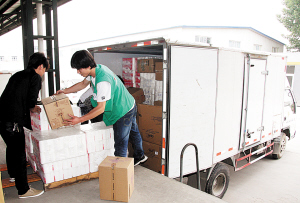 在史各庄村的劝宝超市永久加盟店门口,一辆配送车辆正在卸货,店主褚永久一边麻利地搬运货品,一边打开了话匣子,“配送中心的效率非常高,店里有些缺货了,昨天打的电话,今天就送货上门了。”