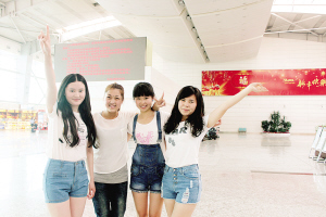 5月11日下午1点10分左右,大连周水子国际机场大厅二楼,4名穿着蓝色短裙的年轻女孩准时出现在VIP值机办理处门口的空地上,她们就是4月25日机场大雾时为滞留旅客们施“魔法”的那支“拉拉队”,正规的名称应该是“互动舞蹈队”。