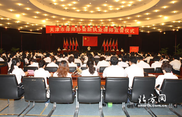 天津北方网讯:6月1日,市律师协会隆重举行新职业律师宣誓仪式,全市228名新执业律师面对国旗庄严宣誓,致力于维护法律正确实施,维护社会公平正义。
