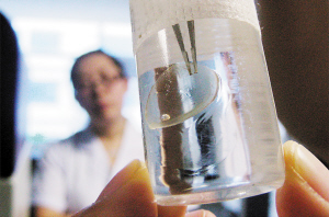 在天津医科大学眼科中心眼库内,新鲜角膜的存量为零,仅有少部分保存材料的角膜存放在无菌试管中,储存在无菌柜子里。张琛医生介绍,这种角膜属于保存材料的角膜,保存时间最长可超过一年,主要用于感染性角膜病变和角膜穿孔等眼疾,能建立角膜的完整性。不过,比起新鲜角膜,保存材料的角膜在厚度、透明度、透光率等性能上都有差距。