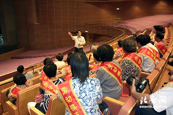 参观音乐厅、歌剧厅的过程中,来自天津邮政公司的全国劳动模范王秀红向讲解人员询问这里的设施设备是一个什么样的水平,讲解人员告诉她在全国“数一数二”,这让王秀红感到十分自豪。