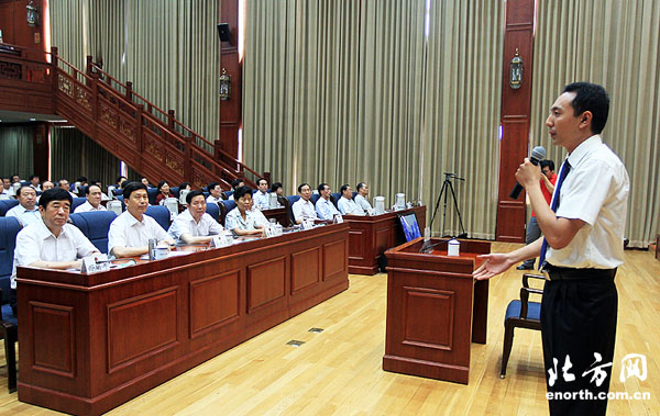 天津北方网讯:27日下午,市人大常委会机关举办保持党的纯洁性教育专题报告会。邀请“周恩来邓颖超纪念馆”宣讲小分队宣讲《共产党员的楷模——周恩来》,用情景再现的形式讲述了周恩来同志生前的感人故事,为市人大常委会机关干部上了一堂生动的党课。市人大常委会主任肖怀远参加并讲话。市人大常委会副主任史莲喜、苟利军、张元龙、邢明军、李亚力,秘书长王世新与机关全体党员干部一起听取报告。
