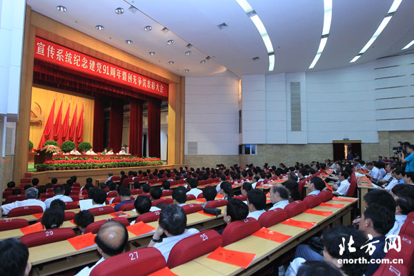 天津北方网讯:日前,天津市宣传系统在天津礼堂召开纪念建党91周年表彰大会,表彰了在创先争优活动中涌现出来的30个先进基层党组织、60名优秀共产党员和30名优秀党务工作者。市委常委、市委宣传部部长成其圣出席会议并讲话,副市长张俊芳主持会议。