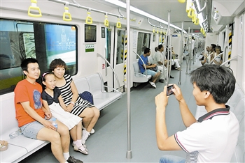 | 在地铁里留张全家福。本报记者 刘乃文 摄 |
