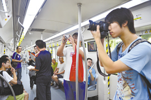 醒目的导向标志,暖色调的装饰风格,宽敞舒适的列车,给每名乘车的旅客留下了深刻印象。每个车站入口和售票机前,都有志愿者的身影。据了解,2号线共有230名志愿者,分布在17个站点,为乘客提供咨询、导向等服务。