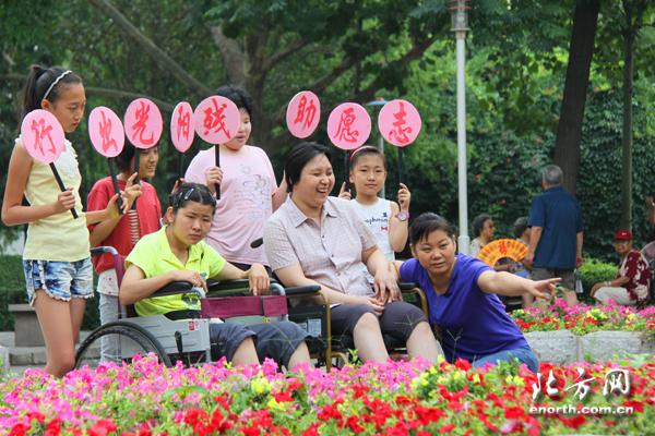 天津北方网讯:在全国“志愿助残阳光行动”主题活动日到来之际,7月4日,天津和平区同发里组织未成年人志愿者们走近残疾人及家庭,体验残疾人切身感受,了解关注残疾人的真实生活,并帮助他们走出家门,享受阳光与鲜花的美丽,驱散他们心中的孤独和无助,从而享受健康、快乐的生活。(通讯员付昱)