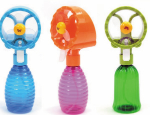 手持小风扇不是个新鲜东西了,现在小店流行的是改良版——手持式雾化风扇,曾经《康熙来了》的电视节目还介绍过,喷雾风扇的原理很简单,在普通小风扇的基础上,底部加上一个装水槽或者水壶。在开启风扇的同时,按下喷头的开关,在享受凉风的同时,又有水雾协助降温。虽然只是小改动,却让人觉得方便了不少,这是利用水分子蒸发吸收周围热量的消暑小物件,风吹出的时候可达到迅速降温的效果,基本可使得表面温度下降5℃左右,还可以加入冰块或是薄荷水,更好地提高清凉度,不光在家可以使用,在海边、泳池等户外也可以随时使用,价钱也不贵,但是要自备两个5号电池。