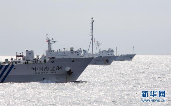 6月底的一天,晴。海监编队列单纵队航行在南海中国主张管辖的某海域。