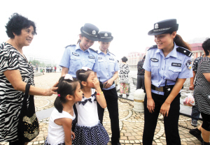 天津北方网讯:在天津站区,你会经常看到由十名女警组成的巡逻队,她们就是公安河东分局天津站区治安派出所女子巡逻队。站区女子巡逻队成立于四年前北京奥运会前夕,组建这支队伍就是要充分展示天津公安良好形象,并让其成为展示天津形象的靓丽名片。四年里,她们累计救助困难群众39853人,协助侦破各类治安案件383件,刑事案件11起,抓获各类违法犯罪嫌疑人58人,她们被誉为“津门第一岗”。本报记者孙震通讯员韩海江赵军摄