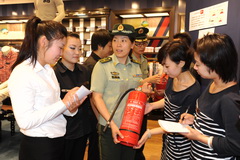 日前,公安消防和平支队在友谊精品商厦通过举行消防疏散演练、消防知识问答、消防志愿者服务和消防文艺演出等多种形式,组织开展以“商场是我家,消防我有责”为主题的消防安全知识培训和“高层自救”火场逃生演练。图为消防人员在向商场员工传授扑救初起火灾、商场火灾逃生和自救等抵御火灾技能。(天津政法报 赵红志)
