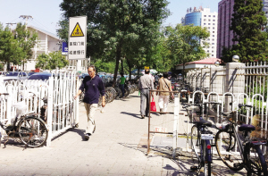 天津北方网讯:便道两侧成了停车处,每天一到点儿还锁门。这车是有地儿放了,可让人往哪走?这不,在南开区南丰路附近,就有一条有门的便道,存车倒是安全了,行人却无路可走。