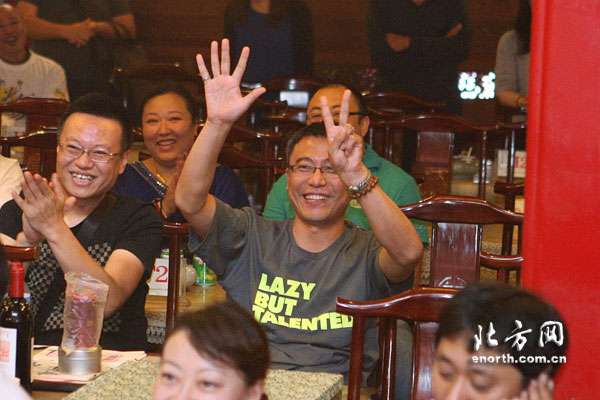 北方网资深网友、北方助学版版主“花旗”再次作为拍卖师主持本次义拍。(摄影吴涛)