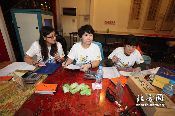 志愿者们在自己负责的岗位上默默奉献,正是有了他们,义拍活动才能圆满结束。(摄影吴涛)