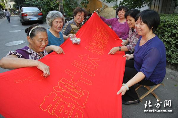 天津北方网讯:在历时两个多月后,由天津和平区林泉社区百余位居民参与绣制的“喜迎十八大,永远跟党走”大型横幅已于昨日完工,即日起面向居民展示。