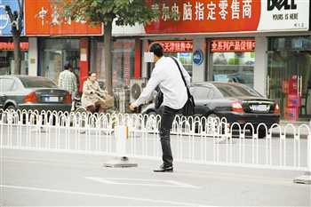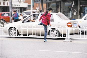 组图:在川流不息的马路上,跨越护栏的场景屡见不鲜。姜艳秋韩燕玲刘波胡智伟摄