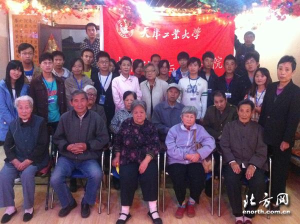 天津北方网讯:人生易老天难老,岁岁重阳,今又重阳。2012年10月21日,在重阳节即将到来之际,天津工大材料科学与工程学院的21名学生来到天津市南开区天拖南养老院,与孤寡老人联欢,欢度重阳佳节,并献上对老人们最真挚的祝福。