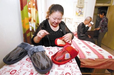 昨日,家住新河街新建里的居民王文娟为自己的公公婆婆做好了两双过冬用的棉拖鞋。午饭过后,她亲手为老人们穿上了拖鞋。“平时公公婆婆对我跟亲闺女一样,结婚二十年了,我想在重阳节的时候为二老献上自己的心意。”王文娟在采访时对记者说道。据了解,不久之前,王文娟在社区里参加了妇女编织的培训活动,老师教了大家织毛衣、编坎肩、做拖鞋等技能。如今马上就要入冬了,她打算给公公婆婆各做一双棉拖鞋,正好当做重阳节的礼物。“自己做的又贴心又暖和,也希望他们度过快乐的晚年生活。”王文娟说。文/图记者贾成龙