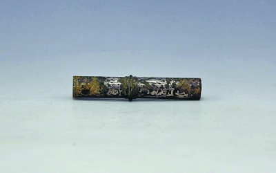 | 青铜错银矛镦,饰错银云纹、兽纹,时代属战国,为一级文物。 |
