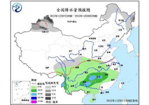 中央气象台今晨发布的最新天气预报显示,7~8日,弱冷空气影响北方地区,新疆北部有小到中雪或雨夹雪,局部地区有大到暴雪。南方地区将有明显降水过程,贵州、广西等地部分地区有大雨或暴雨。
