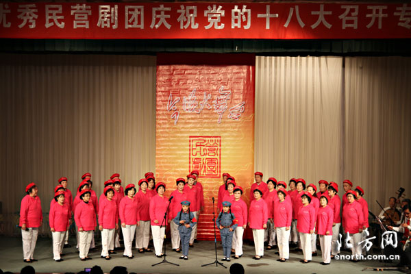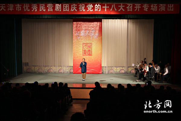 天津北方网讯:11月13日晚,在今晚大舞台,由天津市民营剧团产业孵化基地主办,天津市群众艺术馆承办的“天津优秀民营剧团庆祝十八大胜利召开专场演出”举行。
