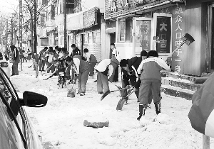 20日,九十中学的学生利用休息时间,义务清理隆礼路上的积雪,为来往行人通行提供便利。
