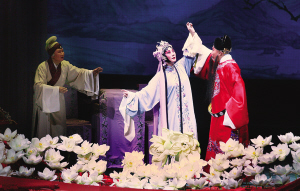 演出大幕拉开,第一场戏便是韩玉娘被卖至瞿家为妾,瞿妻和氏逼迫韩玉娘与瞿士锡圆房接续瞿家香火,但是玉娘宁死不从。玉娘对和氏解释缘由的一席话,巧妙地阐述了金兵入侵后,韩玉娘、程鹏举沦落敌营为奴并被强令婚配,玉娘劝丈夫应为国效力反被丈夫怀疑,后程鹏举追悔莫及,但玉娘却被卖至瞿家的一段故事情节。这一番玉娘与和氏的唱念对答,干净清楚地交代出前因后果,更展示了她对自己国家的热爱和对丈夫的坚贞不渝。改编者不仅加快了剧情的紧凑感和内容的精炼,更从多个侧面与角度,强调了韩玉娘的高尚品德。而且为演员表演和演唱的发挥提供了很宽阔的展示空间,使故事情节感人,好听好看。