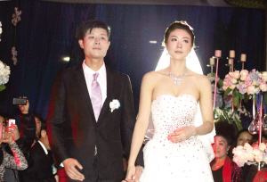 昨天下午,天津女排功勋队员霍晶与天津棒球队队员刘若律正式步入婚姻殿堂,整个婚礼过程隆重且不失热烈。原天津队宿将李珊、张娜、王莉、杨洁、杨亚楠、于静等人均到场祝贺,正在上海参加全国联赛的天津队队员们也通过VCR给一对新人送来了新婚祝福。