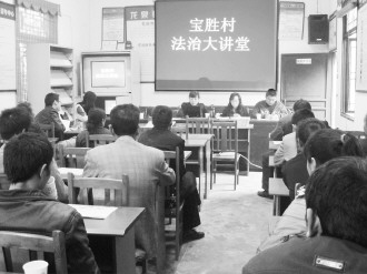 据李录方介绍,为深入开展法制宣传教育,村委会购置了近100册相关教材、辅导书籍和宣传画册,并向上级争取了300余本法制宣传读本,全部存放在村图书室,供广大村民学习。区、镇司法工作人员还经常利用群众赶集时机,通过广播、横幅、专栏、标语等多种形式向普法对象宣传劳动保障法、社会保险法、人口与计划生育法、《工伤保险条例》等与老百姓生活密切相关的法律知识。
