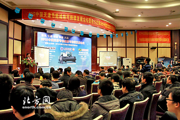 2012中国天津节能减排可持续发展论坛与展会同期举行,天津市制冷学会理事长由世俊和副理事长申江、天津市可再生能源学会理事长马一太、天津市建筑设计院总工伍小亭、天津大学教授杨昭、天津工业大学教授何耀东等分别发言。