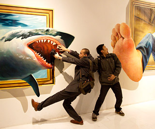 ●天津一家商场12月1日展出了运用视觉错觉原理营造立体效果的“3D立体画”,引来不少市民驻足并拍摄趣味横生、创意十足的照片。(上图)