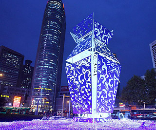 ●一座高达十米的“青花瓷”造型圣诞装置1日晚亮相南京德基广场,这座圣诞装置以抽象青花瓷瓶造型为设计出发点,将中国古典元素与西方节日完美融合,别具一格的创意为民众传递完满、和美的节日气氛。(上图)
