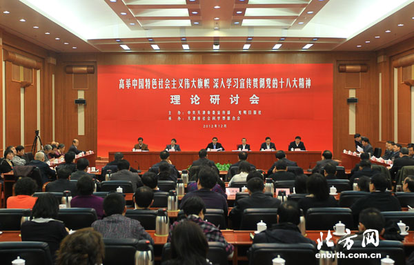 天津北方网讯:5日,市委宣传部与光明日报社联合举办“高举中国特色社会主义伟大旗帜深入学习宣传贯彻党的十八大精神”理论研讨会。市委常委、市委宣传部部长成其圣出席并讲话,光明日报总编辑何东平在会上致辞。