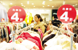“每次打折,销量都会有个小高峰,所以为了业绩,我们不得不打折。”谈到年末持续不断的打折活动,本市一家服装品牌的销售经理表示。“衣服总是有折扣,我也都是赶在打折的时候买,现在想想这一年基本没买过正价款。”在学校工作的顾小姐表示。频繁的折扣,让很多消费者都认为,服装的标价就是个“幌子”,甚至达到了“不打折不买衣服”的地步。“今年市场竞争太激烈了,百货的销售情况都不太好,只能打折。”商场销售人员表示。“新款现在两件7折,三件6折。”商场内大部分的服装品牌,除了海报款还能“坚挺”一段时间,其他应季新款基本上是上市就打折。